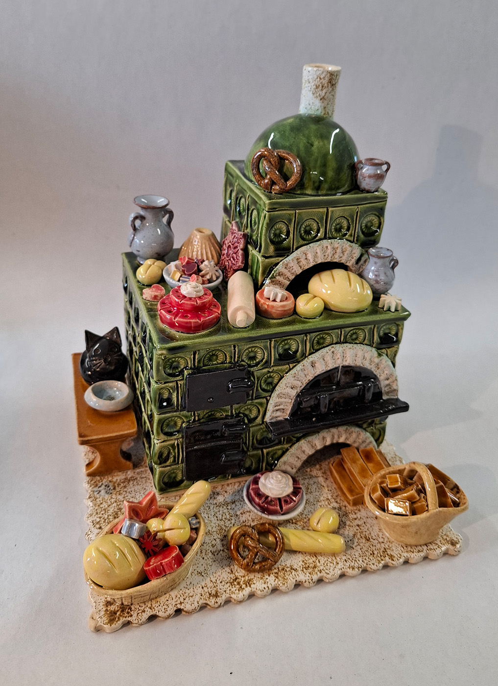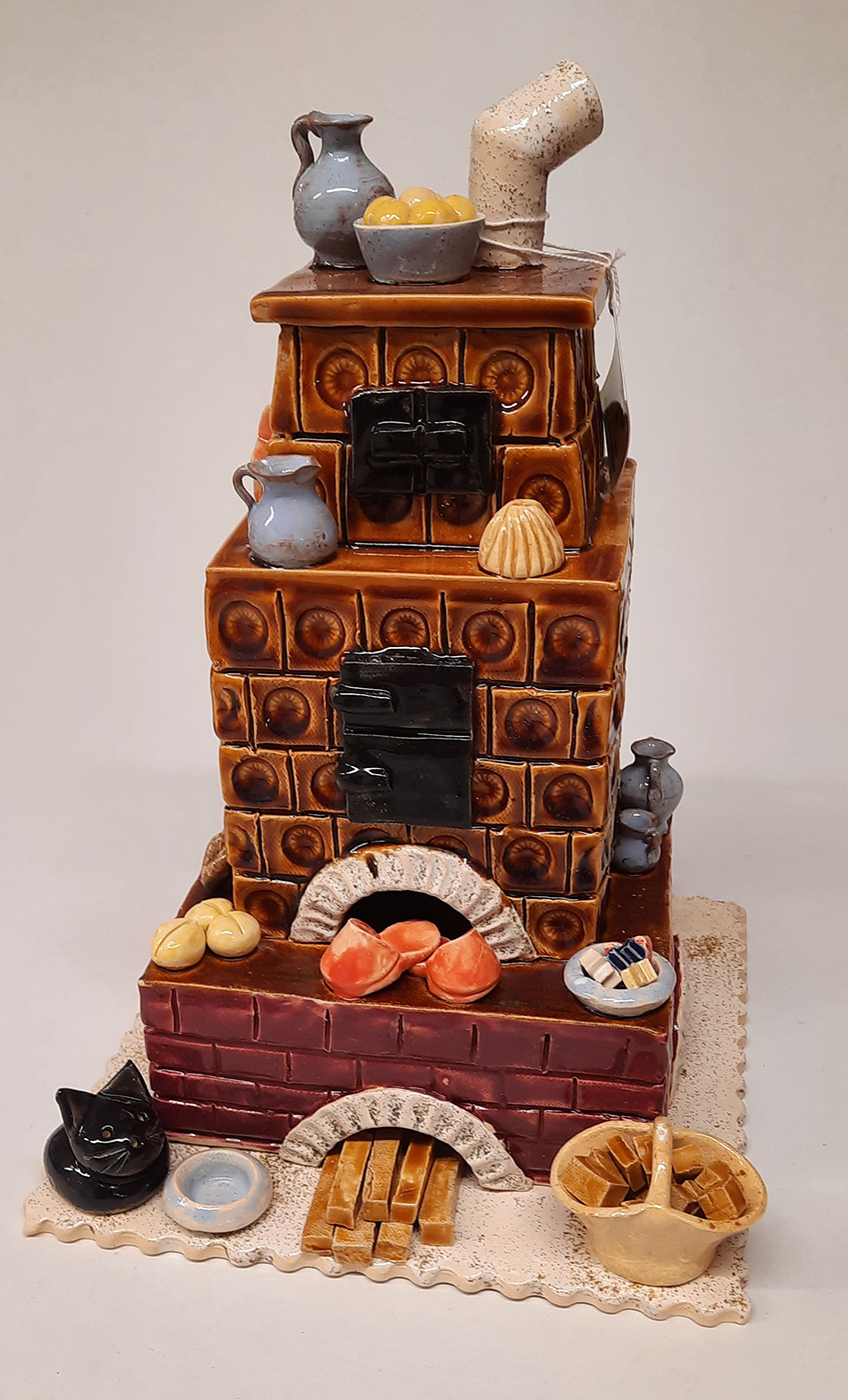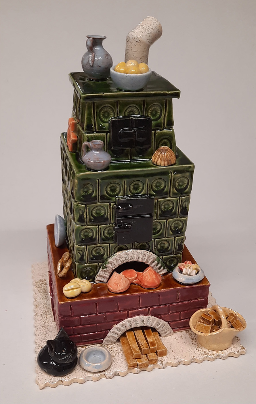 Analog dem erzgebirschem Brauchtum der Räuchermännchen töpfere ich in Plattentechnik Miniaturkachelöfen. Diese Öfchen sind zu jeder Jahreszeit dekorativ - aber ganz besonders zu Weihnachten. Sie werden als Räucheröfen verwendet, in denen man Räucherkerzen abbrennen kann. Wenn es aus dem Schornstein raucht, dann spätestens werden Erinnerungen an längst vergangenen Zeiten wach - wie man als Kind am Kachelofen gesessen hat und sich wohlig wärmte.