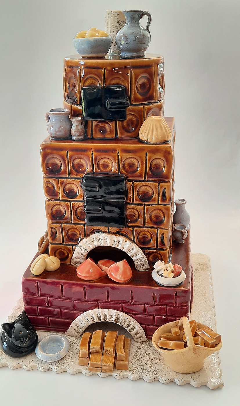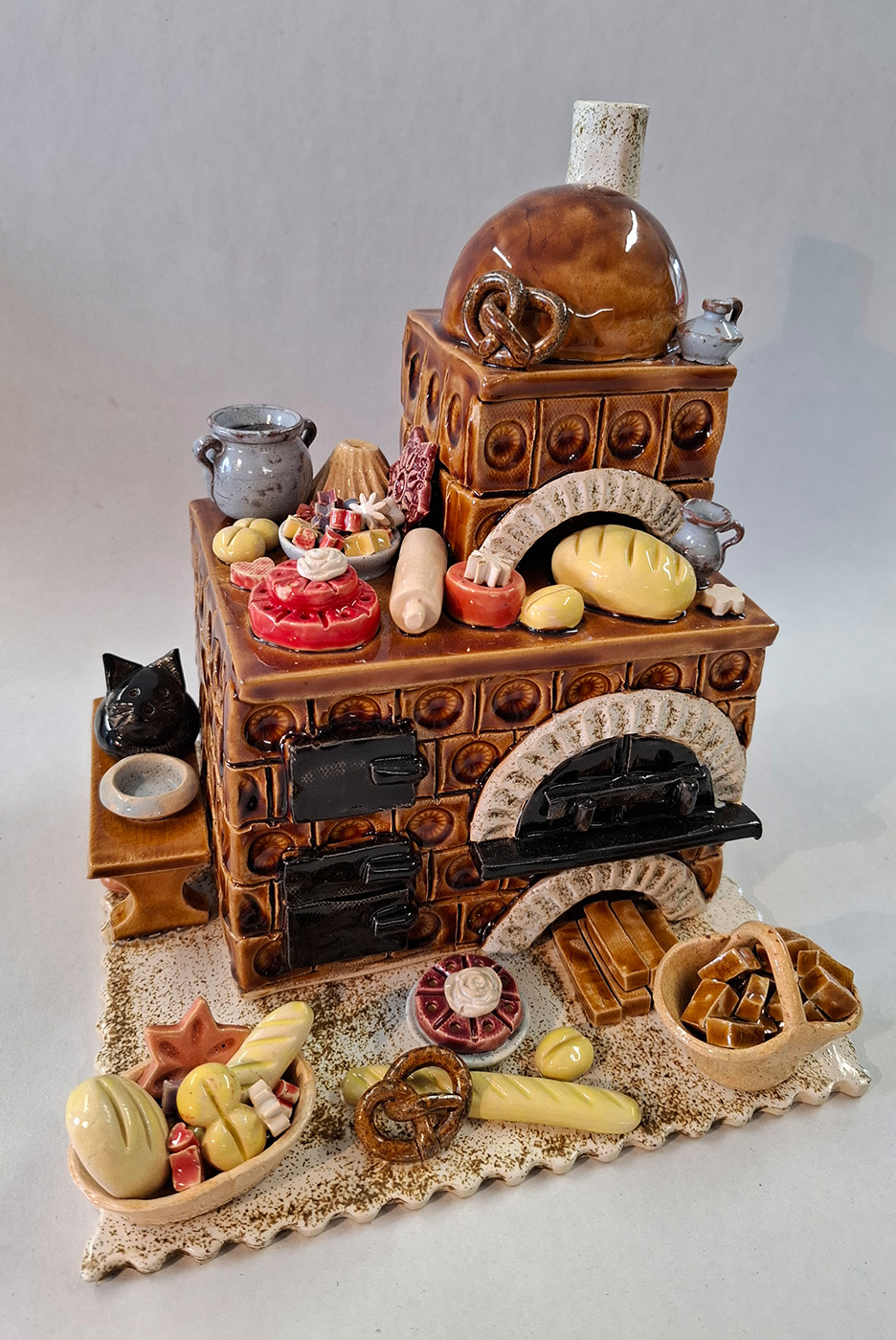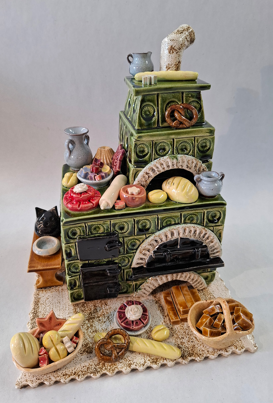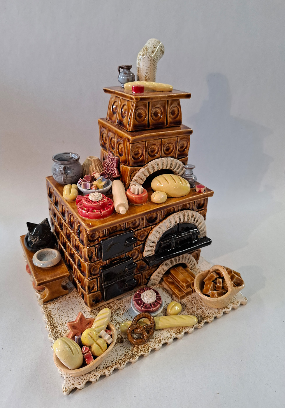 Analog dem erzgebirschem Brauchtum der Räuchermännchen töpfere ich in Plattentechnik Miniaturkachelöfen. Diese Öfchen sind zu jeder Jahreszeit dekorativ - aber ganz besonders zu Weihnachten. Sie werden als Räucheröfen verwendet, in denen man Räucherkerzen abbrennen kann. Wenn es aus dem Schornstein raucht, dann spätestens werden Erinnerungen an längst vergangenen Zeiten wach - wie man als Kind am Kachelofen gesessen hat und sich wohlig wärmte.